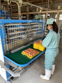 卵を傷つけることなくゆっくりと集卵装置が稼働しています。