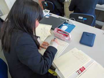 その場面にふさわしい会話のやり取りを、生徒自身が考えているところです。