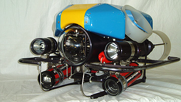 「ROV」と呼ばれるリモコン式の水中カメラ