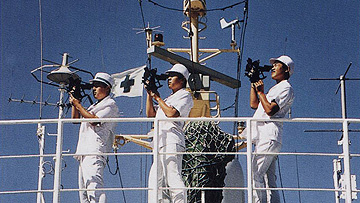 これは航海当直といって、船が進む先の安全を確認する役割をはたしています。